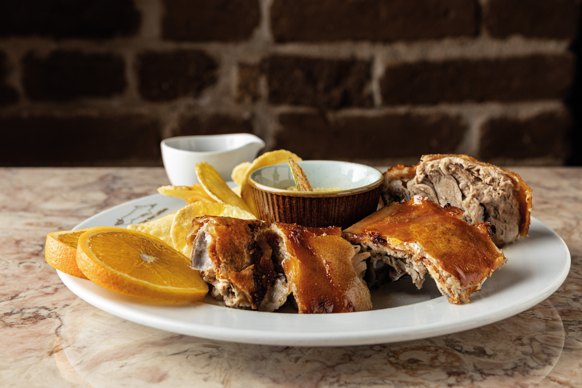O grande destaque do restaurante é, sem dúvida, o leitão assado lentamente no forno a lenha, uma tradição que remonta aos tempos antigos. Cada garfada revela a suculência e o tempero perfeito dessa iguaria, que derrete na boca e faz jus à reputação do restaurante.
