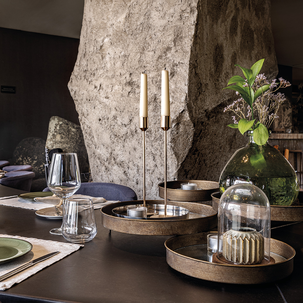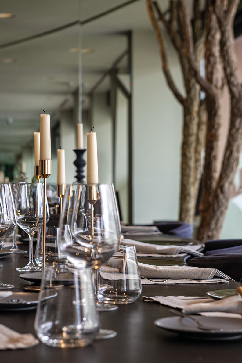 À medida que a noite cai e o relógio marca 22h00, o teto do restaurante transforma-se num palco celestial, oferecendo uma vista deslumbrante do céu estrelado, uma homenagem ao firmamento único do Alentejo.