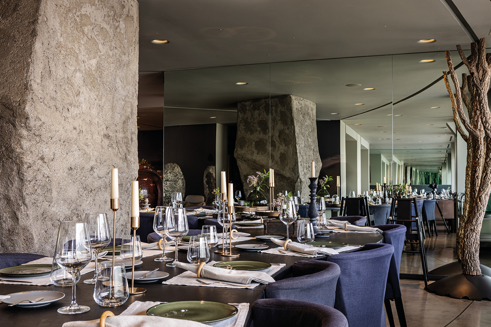 As night falls and the clock strikes 10:00 PM, the restaurant’s ceiling transforms into a celestial stage, offering a stunning view of the starry sky, a tribute to the unique firmament of Alentejo.