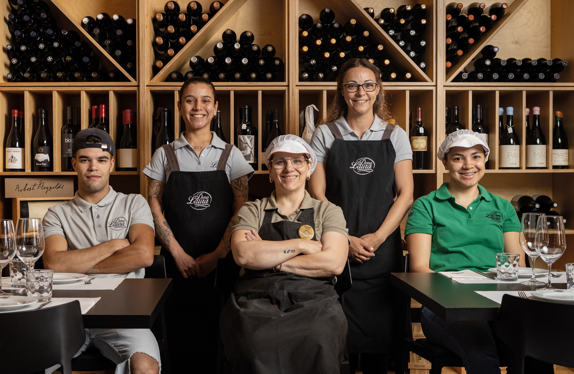 O menu do Dona Laura é essencialmente composto por tapas, incentivando a partilha e a degustação de diversos sabores. Entre as delícias do menu, destacam-se a Tábua de Enchidos, Queijos e Doce, o Folhado de Chevre com Mel e Nozes, e os Ovos Mexidos com Farinheira. Cada prato é preparado com ingredientes frescos e locais, refletindo o melhor da região.